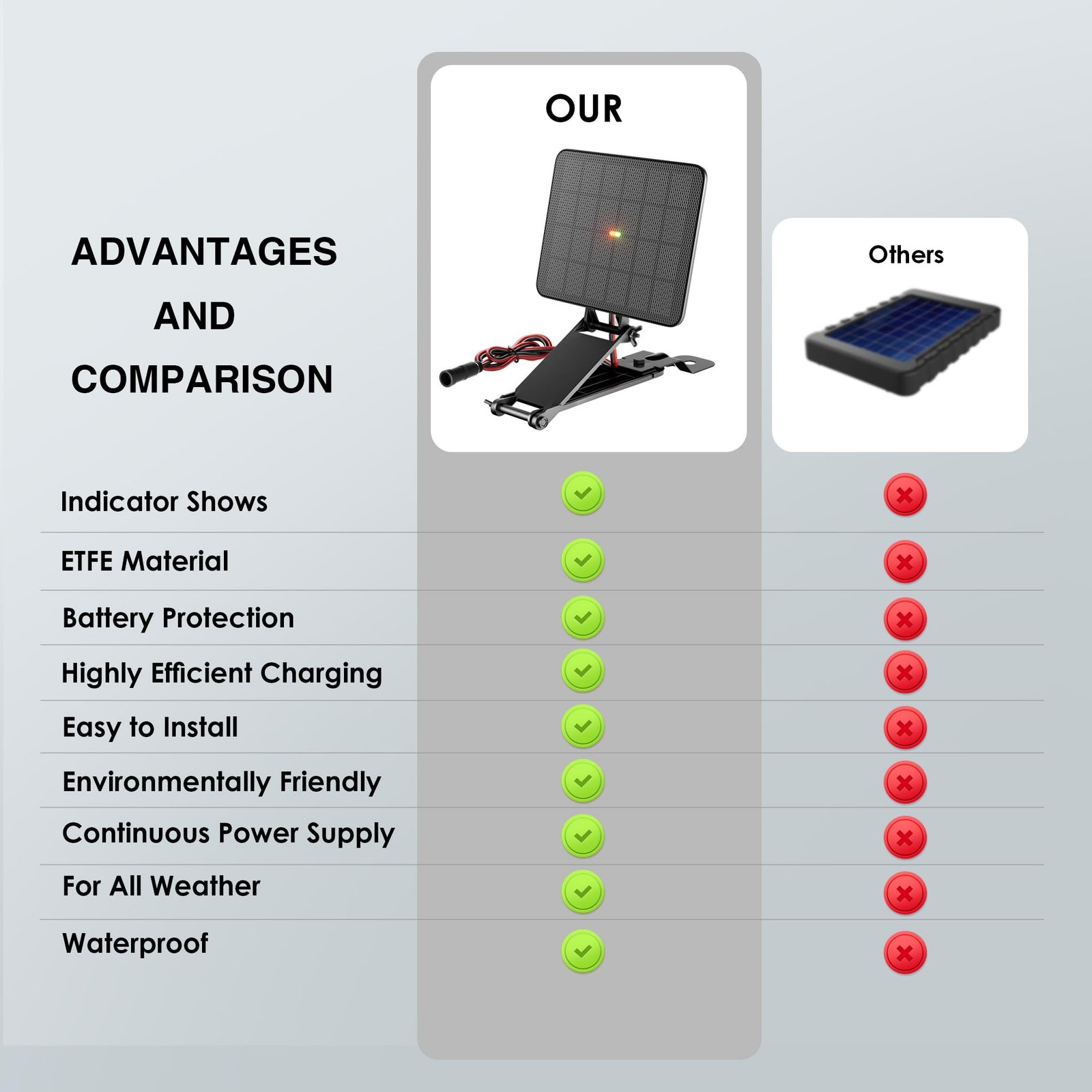 - Zero Battery Drain: Ours consumes zero battery power. Equipped with diodes in controller, our system prevents reverse current flow, assuring no battery drainage even when the sun isn't shining